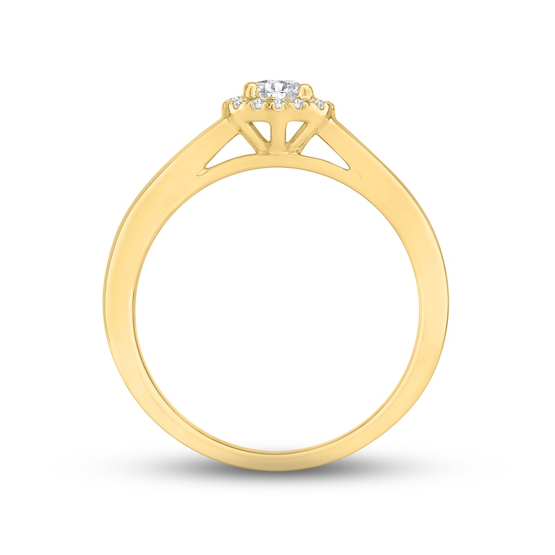 Radiant and ravishing, this engagement ring showcases a 1/3-carat princess-cut diamond framed by sparkling round diamonds. Channel-set round diamonds shimmer down the 14K yellow gold band. The ring has a total diamond weight of 5/8 carat and is from our Now and Forever® bridal collection.