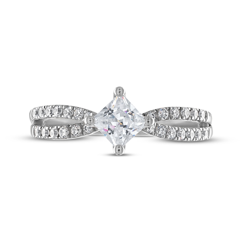- Princess-Cut Diamond Split Shank Engagement Ring 3/4 ct tw White Gold Plated