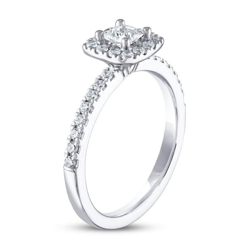 - THE LEO Diamond Engagement Ring 5/8 ct tw Princess & Round-cut White Gold Plated