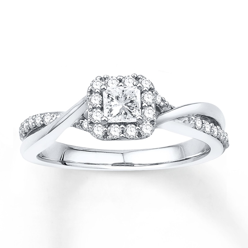 Diamond Engagement Ring 1/2 ct tw Princess-cut White Gold Plated