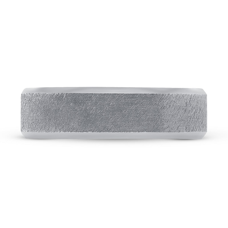 Available in sizes for men and women, this timeless wedding band features a textured center and beveled edges. The 5mm band is crafted of platinum, a metal prized for its luster and durability.
