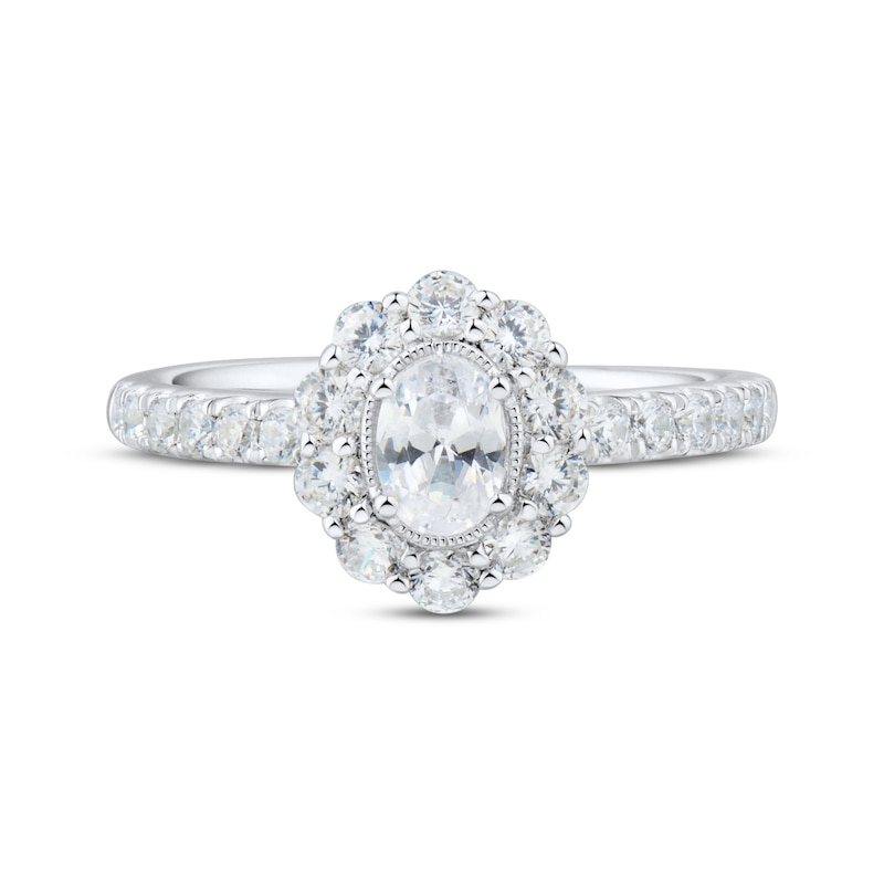 - Oval & Round-Cut Diamond Engagement Ring 1-1/4 ct tw Platinum