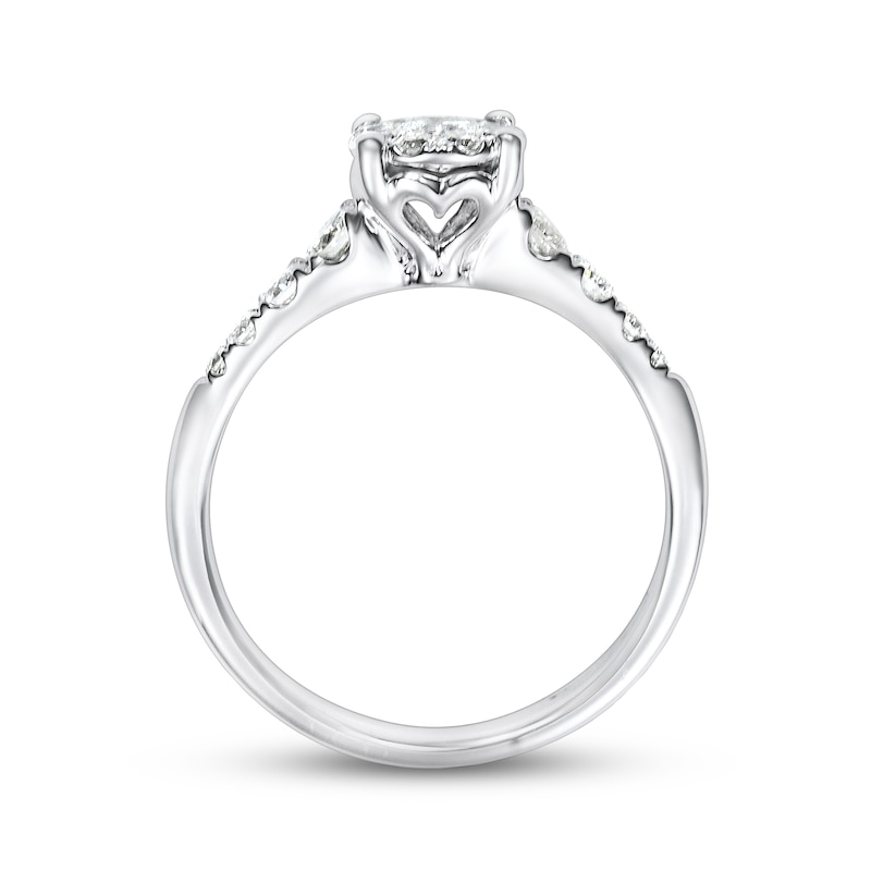 This engagement ring features a brilliant round diamond center with glittering round diamonds tracing along the top of the band. The ring has a total diamond weight of 5/8 carat. The ring is fashioned in 14K white gold to complete the classic look. Available online while supplies last. Previously Owned Treasures are not eligible for in-store pickup. Previously Owned Treasures may only be shipped either to your home address or to an alternate address. Price comparison based on new item pricing.