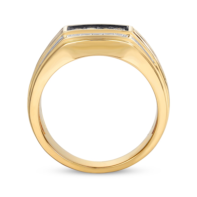 Rows of natural round brown and white diamonds are set in a generous 10K yellow gold band in this handsome men's ring. Black and white rhodium flashes complement the contrasting diamond colors. The ring has a total diamond weight of 1 carat. From the Now & Forever® collection. Available online while supplies last. Previously Owned Treasures are not eligible for in-store pick-up. Previously Owned Treasures may only be shipped either to your home address or to an alternate address.