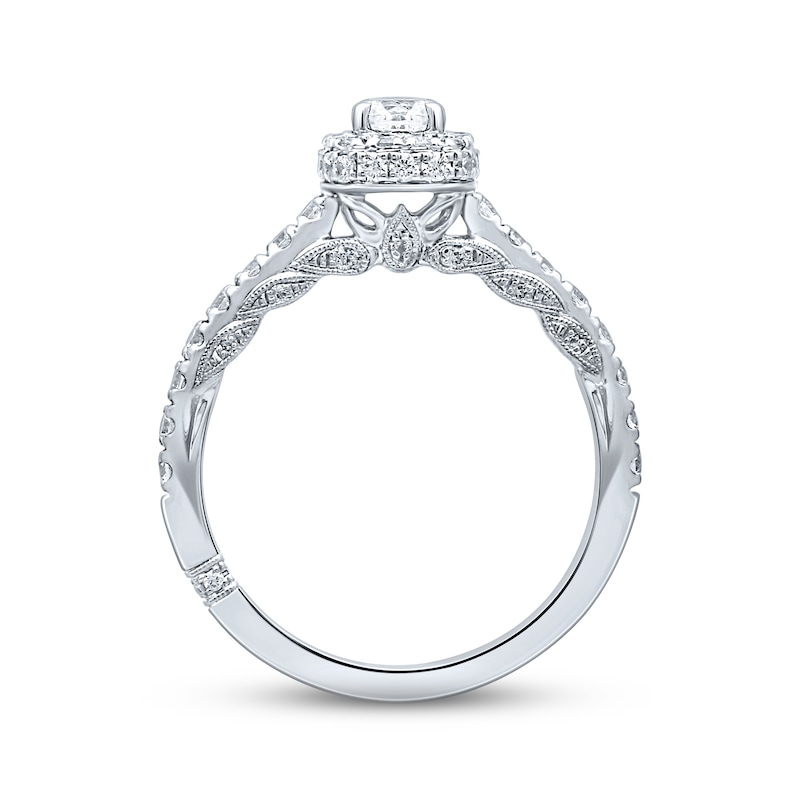 This gorgeous engagement ring from the Monique Lhuillier Bliss collection features a scintillating round center diamond framed by smaller round diamonds. Additional round diamonds shimmer along the 18K white gold band, bringing the total diamond weight to 7/8 carat. From the Monique Lhuillier Bliss collection, available exclusively at KAY. Please note: This ring is available in limited sizes. If you don't see your size here, please visit a store to order your ring. Available online while supplies last. Previously Owned Treasures are not eligible for in-store pickup. Previously Owned Treasures may only be shipped either to your home address or to an alternate address. Price comparison based on new item pricing.