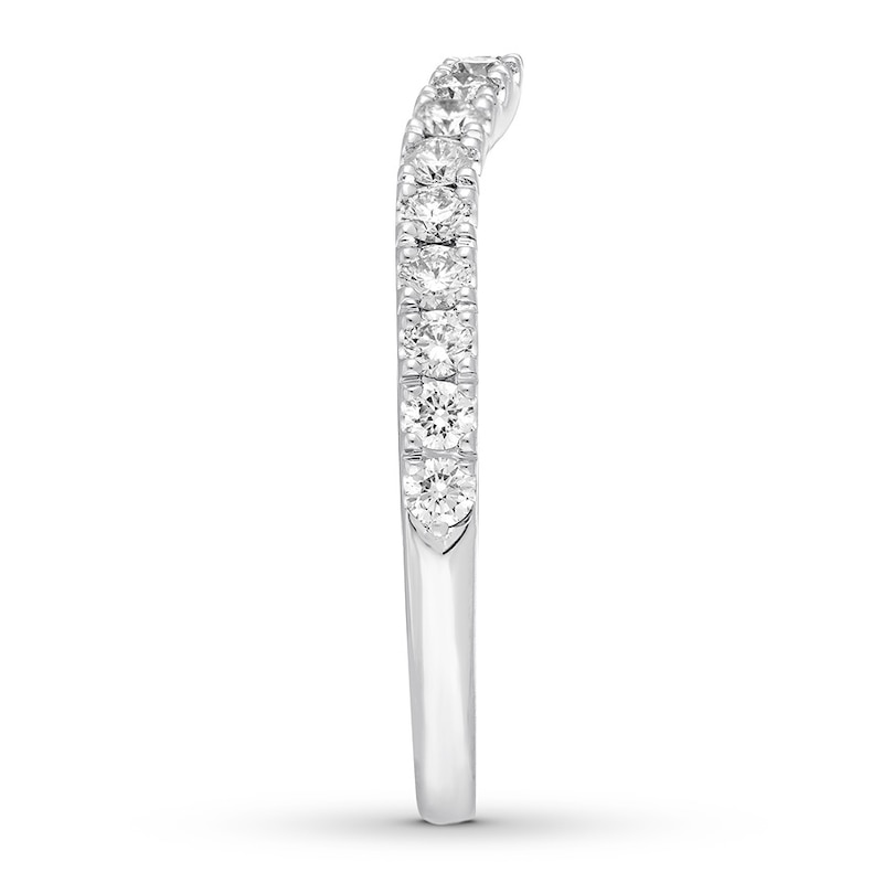 This sparkling wedding band is a gorgeous complement to her matching Neil Lane Studio engagement ring (sold separately). The contoured 14K white gold band is lined with round diamonds totaling 1/2 carat in weight. Available online while supplies last. Previously Owned Treasures are not eligible for in-store pickup. Previously Owned Treasures may only be shipped either to your home address or to an alternate address. Price comparison based on new item pricing.