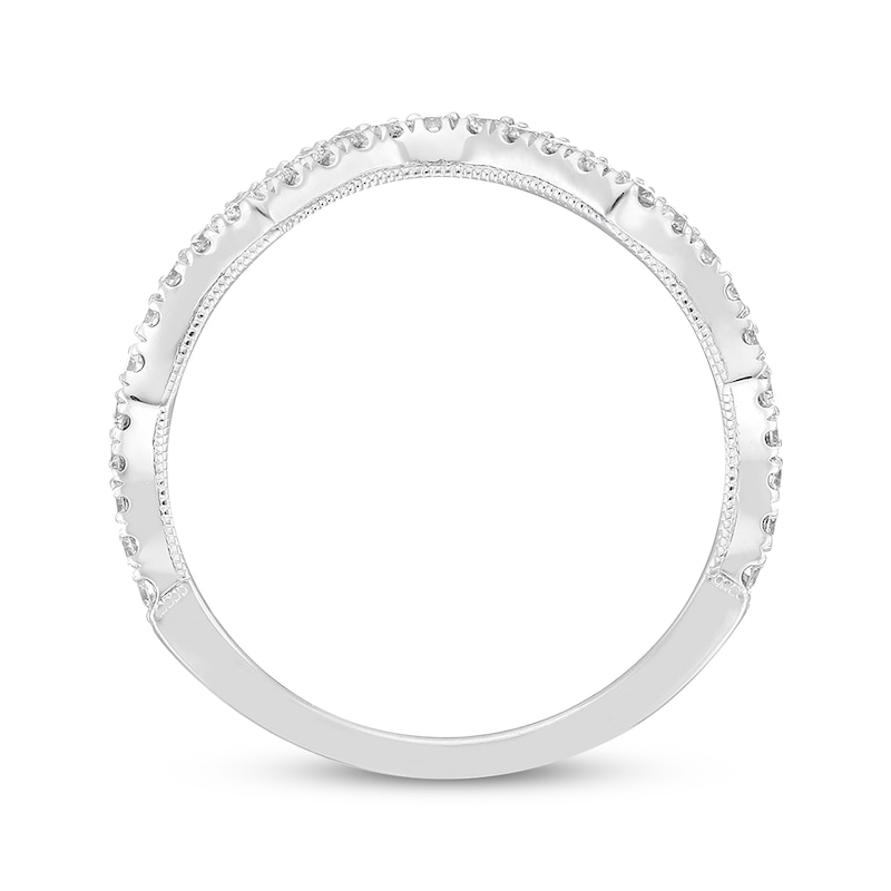 Contoured to fit alongside the matching Neil Lane Bridal® engagement ring (sold separately), this gorgeous wedding band features luxurious curves of 14K white gold decorated with sparkling round diamonds. The ring has a total diamond weight of 1/3 carat. Available online while supplies last. Previously Owned Treasures are not eligible for in-store pickup. Previously Owned Treasures may only be shipped either to your home address or to an alternate address. Price comparison based on new item pricing.