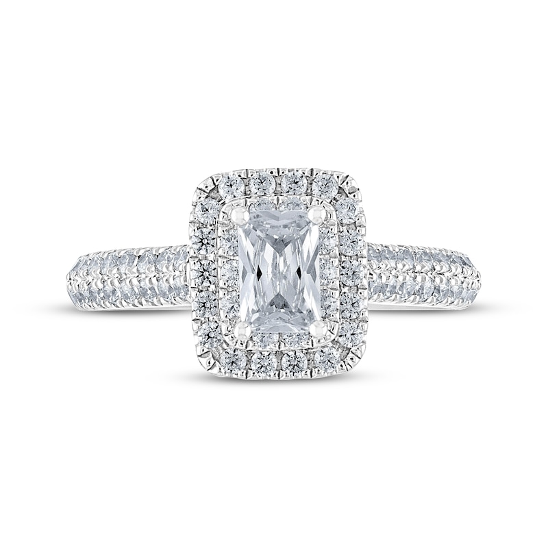 - THE LEO Diamond Engagement Ring 1 ct tw Emerald & Round-cut White Gold Plated