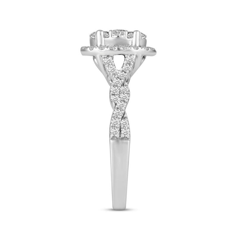 Monique Lhuillier Bliss Diamond Engagement Ring 7/8 ct tw Pear & Round-cut White Gold Plated