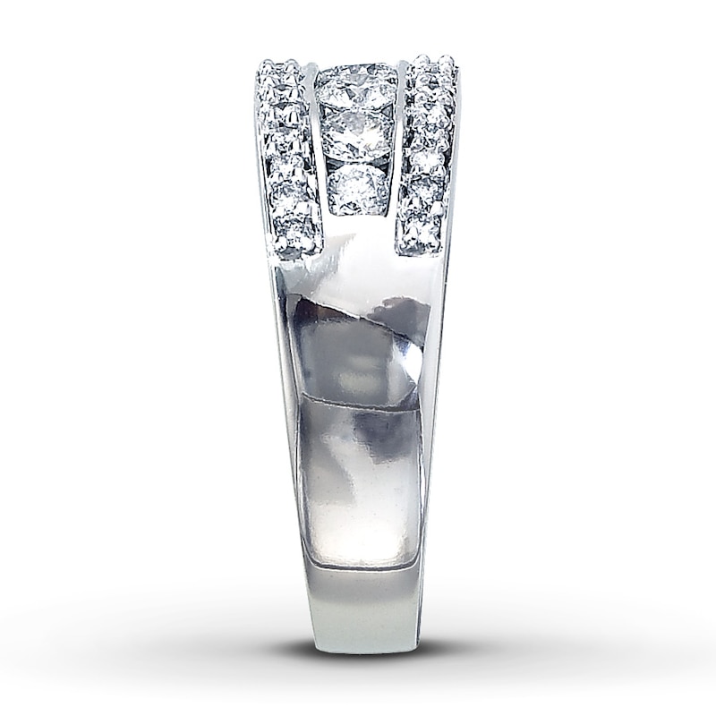 Seven beautifully matched round diamonds are centered between rows of additional round diamonds to create this brilliant ring. One carat of diamonds is set in a band of 14K white gold. Available online while supplies last. Previously Owned Treasures are not eligible for in-store pick-up. Previously Owned Treasures may only be shipped either to your home address or to an alternate address. Price comparison based on new item pricing.