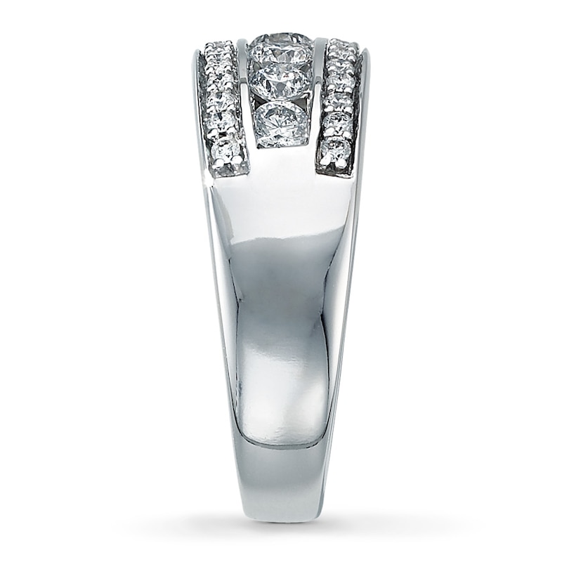 Seven beautifully matched round diamonds are centered between rows of additional round diamonds to create this brilliant anniversary ring. The diamonds, with a total diamond weight of one carat, are set in a band of 14K white gold. Available online while supplies last. Previously Owned Treasures are not eligible for in-store pickup. Previously Owned Treasures may only be shipped either to your home address or to an alternate address.