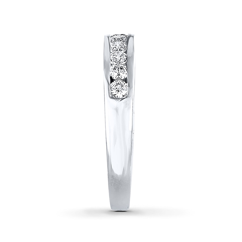 This classic wedding band for her features 1/2 carat of shimmering diamonds. The elegant ring is styled in 14K white gold. Available online while supplies last. Previously Owned Treasures are not eligible for in-store pick-up. Previously Owned Treasures may only be shipped either to your home address or to an alternate address.