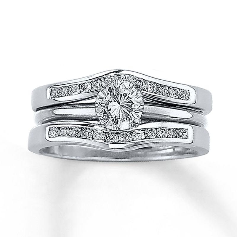 This beautiful fine jewelry enhancer ring features double the diamonds in two rows designed to sweep above and below your diamond solitaire ring. More than 20 near-colorless round diamonds (1/4 carat total weight) are secured by a double-channel setting in 14K white gold with a beautiful high-polish finish. Diamond solitaire is sold separately. Available online while supplies last. Previously Owned Treasures are not eligible for in-store pickup. Previously Owned Treasures may only be shipped either to your home address or to an alternate address. Price comparison based on new item pricing.