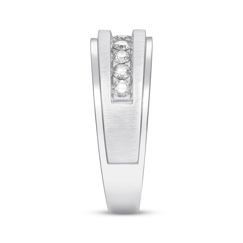This satin-finish wedding band for him displays nine sparkling round diamonds in a setting of 10K white gold. The ring has a total diamond weight of 1/2 carat. Available online while supplies last. Previously Owned Treasures are not eligible for in-store pickup. Previously Owned Treasures may only be shipped either to your home address or to an alternate address. Price comparison based on new item pricing.