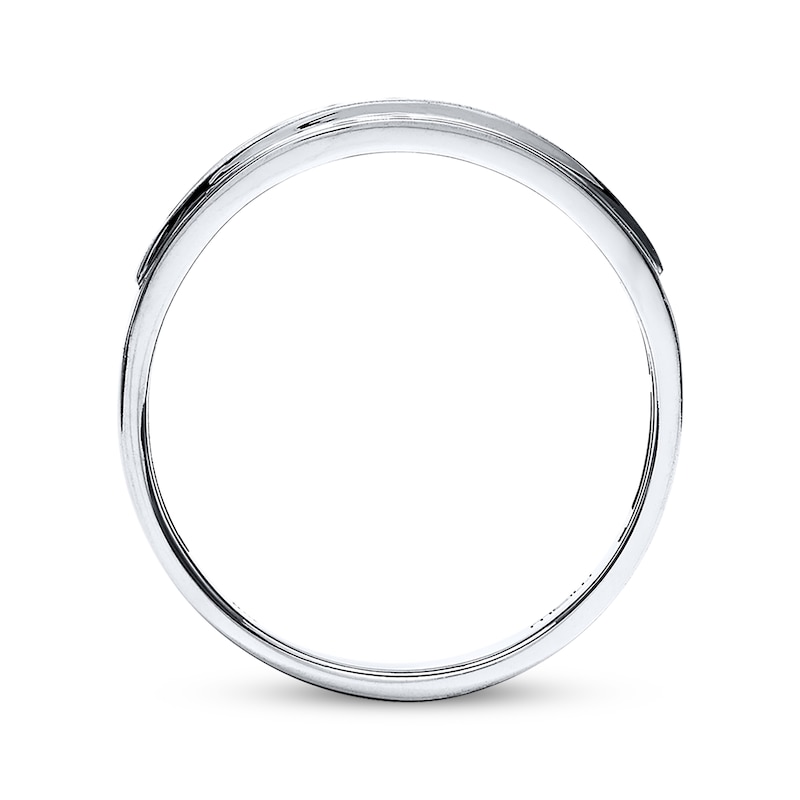 This Supreme-Fit™ men's wedding band is styled with five brilliant round diamonds set in 10K white gold. The ring has a total diamond weight of 1/4 carat. Available online while supplies last. Previously Owned Treasures are not eligible for in-store pickup. Previously Owned Treasures may only be shipped either to your home address or to an alternate address.