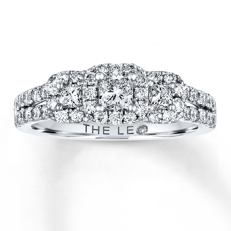 THE LEO Diamond Engagement Ring 7/8 ct tw Princess & Round-cut Diamonds White Gold Plated