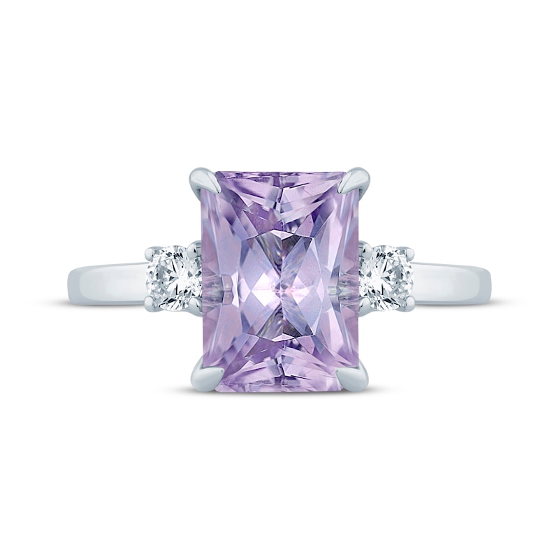 - Monique Lhuillier Bliss Radiant-Cut Light Amethyst & Diamond Engagement Ring 1/4 ct tw White Gold Plated