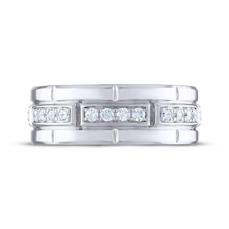 This magnificent men's wedding band from THE LEO Diamond® collection features stunning round-cut diamonds set in iconic 14K white gold. The independently-certified diamonds total 1/2 carat in weight.