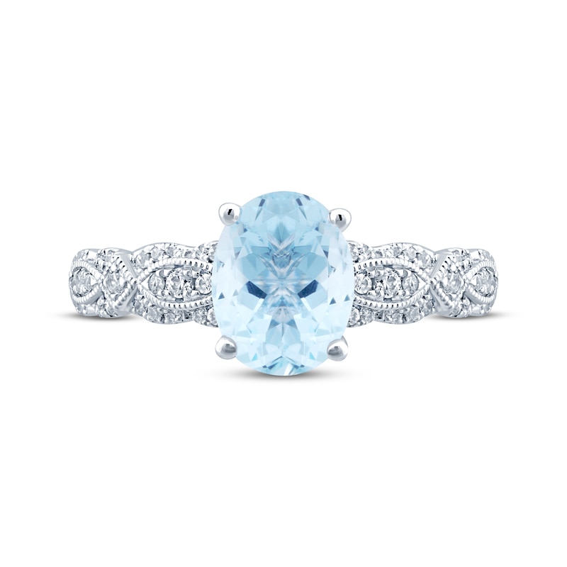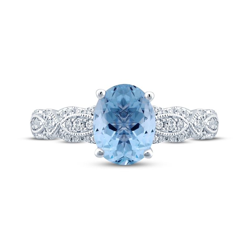 This timeless engagement ring showcases a dreamy oval-cut aquamarine as the glimmering focal point. Brilliant round diamonds sparkle amid intricate milgrain detailing on the band, which is crafted in iconic 10K white gold with a rhodium finish. The ring has a total diamond weight of 1/4 carat. From the Now & Forever® bridal collection.