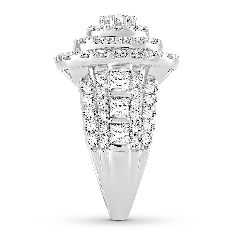 The most important chapter of your love story is about to begin. Celebrate the moment with a ring that's as bold and brilliant as your feelings for each other. This breathtaking engagement ring for her is awash in dozens of round and princess-cut diamonds totaling an impressive 4 carats in total weight. The ring is crafted of 14K white gold.