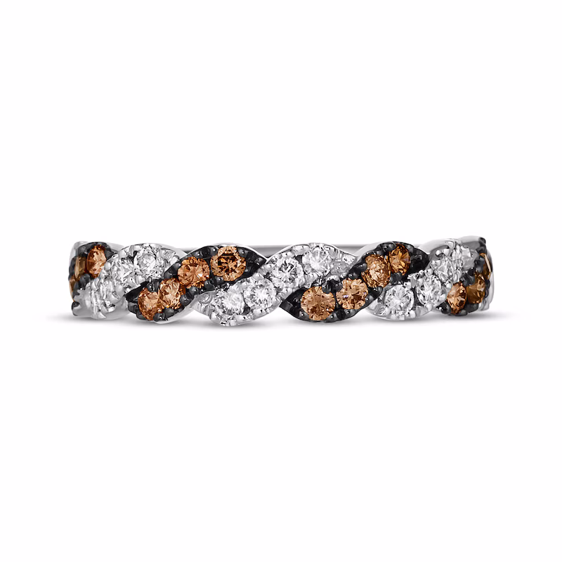 Ready for any occasion, this Le Vian® ring from the KAY exclusive Chocolate Twist⢠collection shines morning to night. Dazzling round-cut Nude Diamonds⢠and rich Chocolate Diamonds® in black rhodium plate adorn the twisted shank. The ring is styled in 14K Vanilla Gold® and has a total diamond weight of 1/2 carat. Le Vian®. Discover the Legend. This ring is available in limited sizes. If you don't see your size here, please visit a store to order your ring.