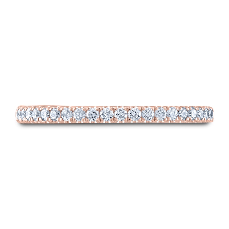This beautiful diamond wedding band from THE LEO Diamond® collection showcases a row of stunning round-cut independently-certified diamonds. The ring is crafted in dreamy 14K rose gold and complements her matching engagement ring (sold separately). The ring has a total diamond weight of 1/5 carat.