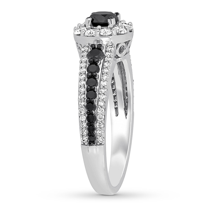 Sparkling white diamonds beautifully complement striking black diamonds along this wonderfully designed engagement ring. Crafted of 14K white gold, the ring has a total diamond weight of 1 carat.