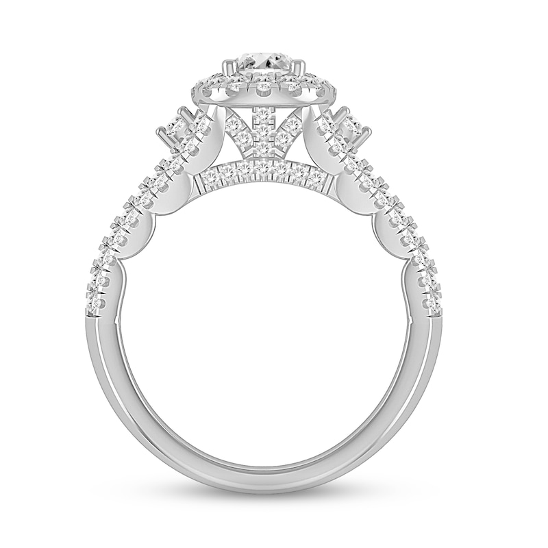 Radiant with timeless style, this gorgeous engagement ring centers a 1/2-carat round diamond surrounded by a shimmering halo of round diamonds. More round diamonds sparkle amid the split shank, while twin rows of additional round diamonds flow halfway down the band. The ring is crafted in iconic 14K white gold nad has a total diamond weight of 1-1/5 carat. From the Now & Forever® bridal collection.