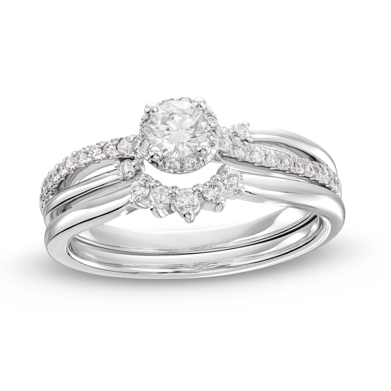 - Diamond Halo Engagement Ring 3/8 ct tw Round-cut White Gold Plated