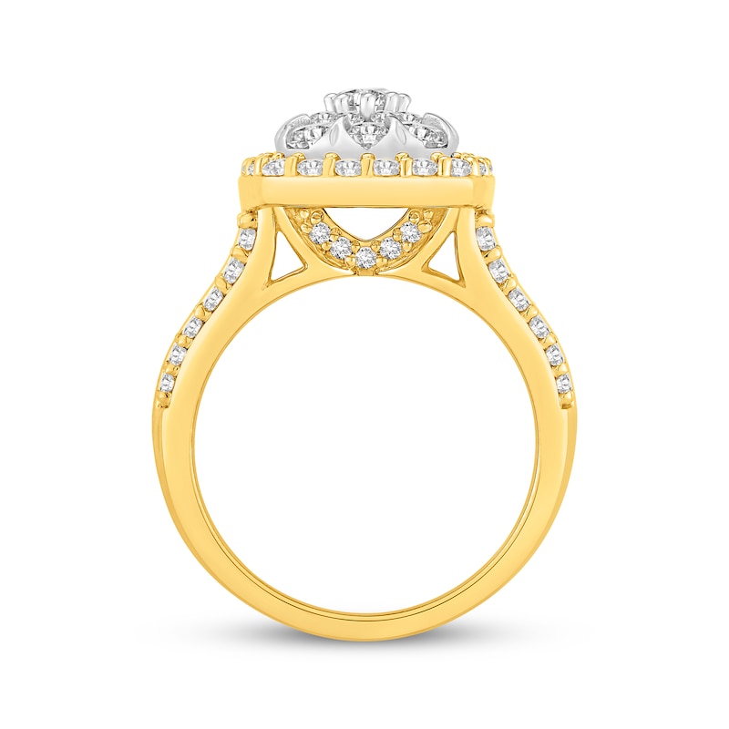 - Multi-Diamond Center Cushion-Frame Engagement Ring 2 ct tw Two-Tone Gold Plated