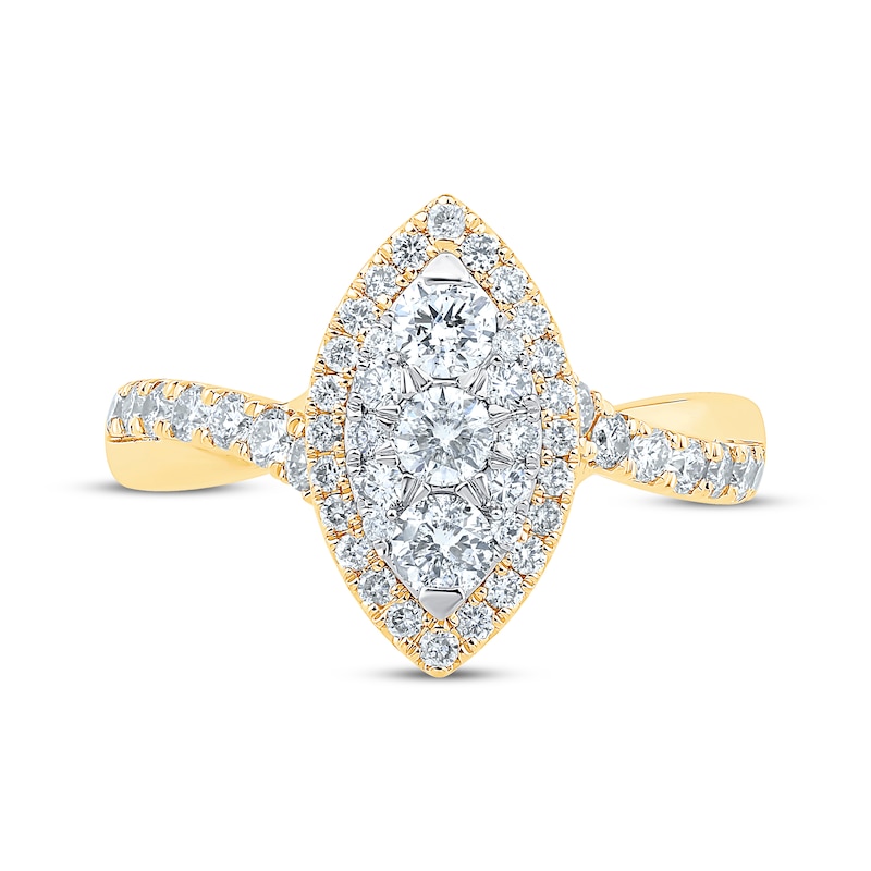 - Multi-Diamond Center Marquise-Shape Engagement Ring 1 ct tw Two-Tone Gold Plated