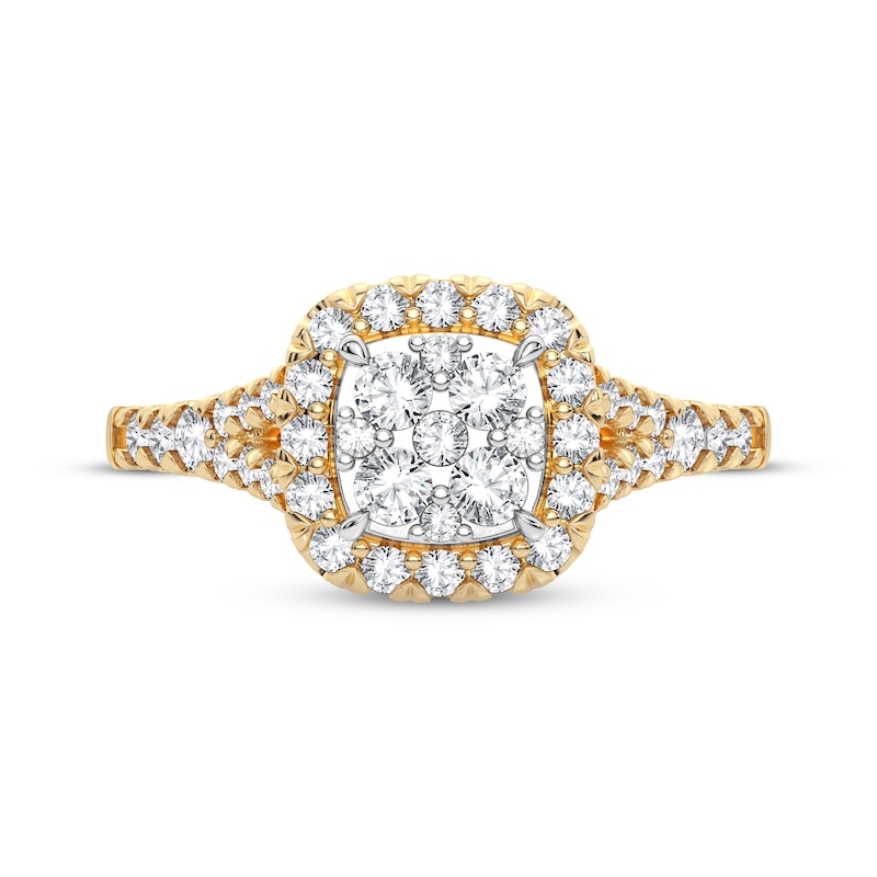- Multi-Diamond Center Split Shank Engagement Ring 3/8 ct tw Round-cut Yellow Gold Plated
