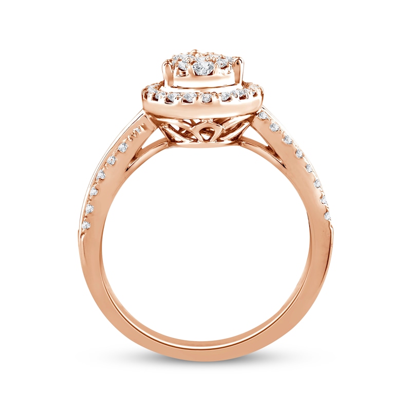 - Multi-Diamond Center Teardrop Frame Engagement Ring 3/4 ct tw Rose Gold Plated