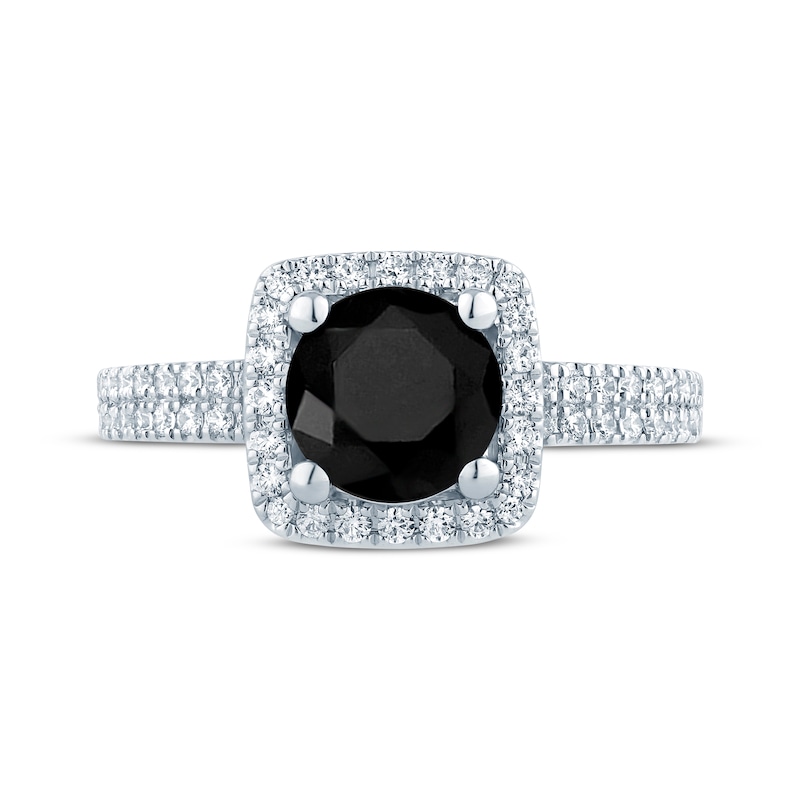 Appeal to her sleek style with this engagement ring. At its center, a fascinating 2-carat round-cut black diamond dazzles in a cushion-shaped frame of round white diamonds. More round white diamonds line the shank in pairs, bringing the total diamond weight to 2 3/8 carats. From the Now & Forever® bridal collection.