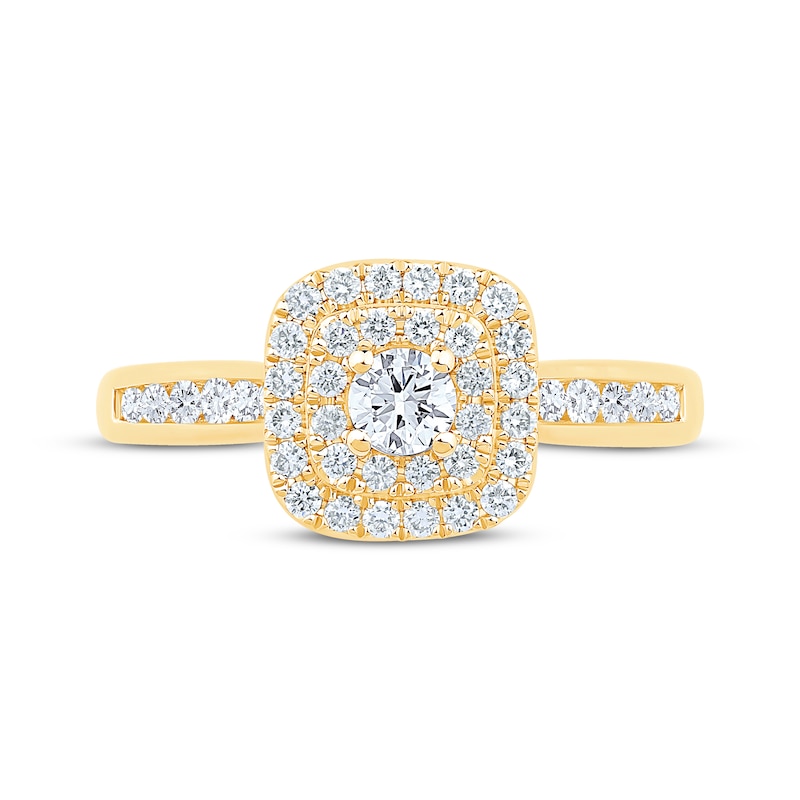 - Round-Cut Diamond Double-Halo Engagement Ring 5/8 ct tw Yellow Gold Plated