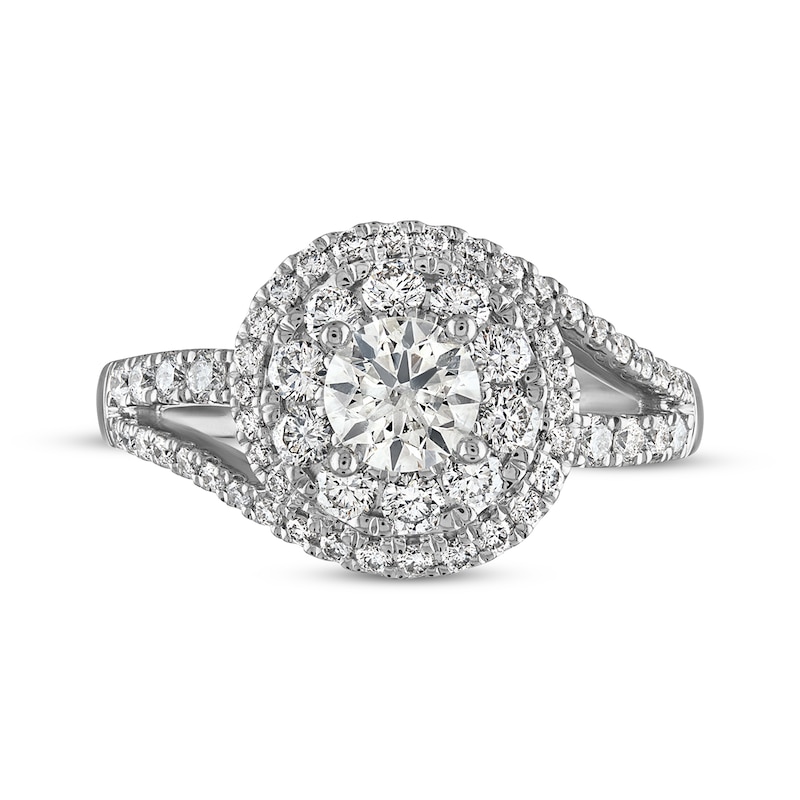 - Round-Cut Diamond Halo Bypass Engagement Ring 1-1/3 ct tw White Gold Plated