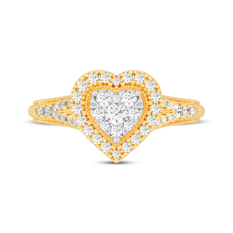 - Round-Cut Diamond Heart-Shaped Engagement Ring 1/2 ct tw Yellow Gold Plated