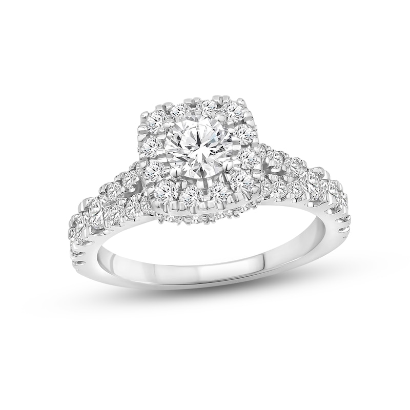 Diamond Engagement Ring 1-5/8 ct tw Round-cut White Gold Plated