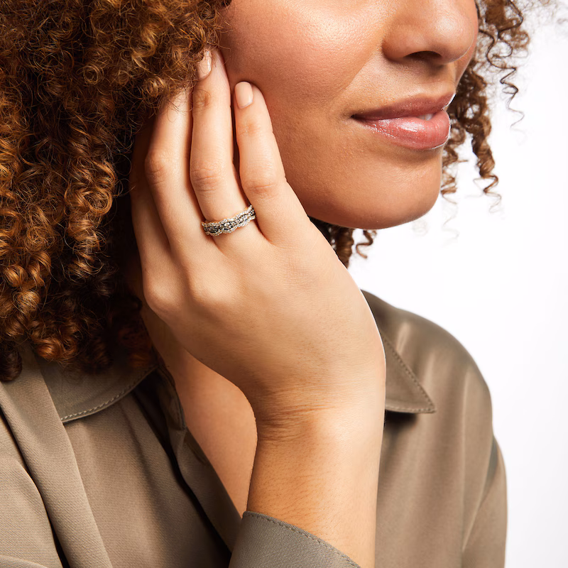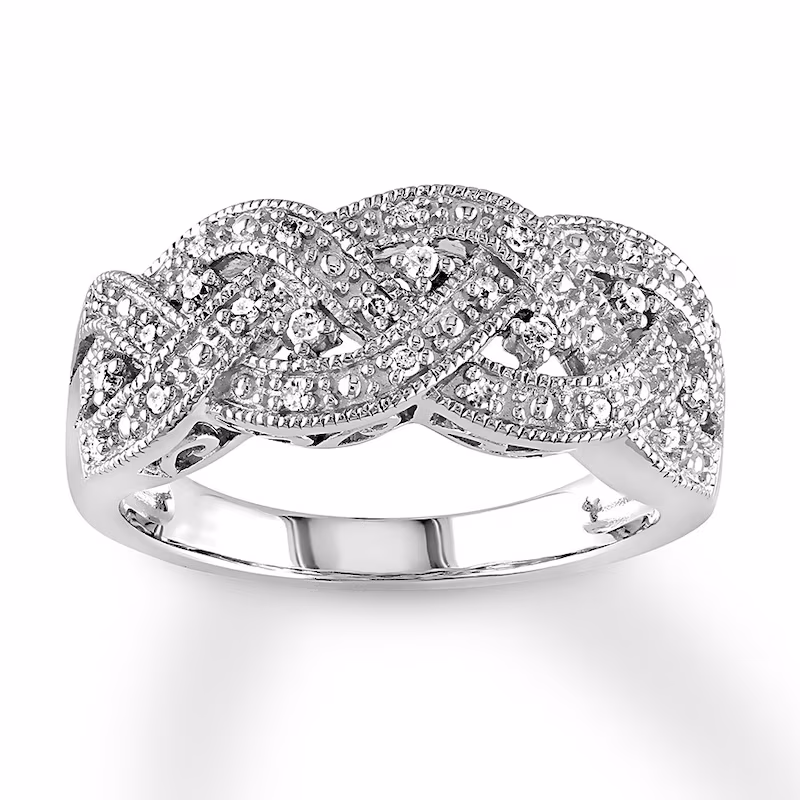 Diamond Woven Ring 1/8 ct tw Round-cut Sterling Silver