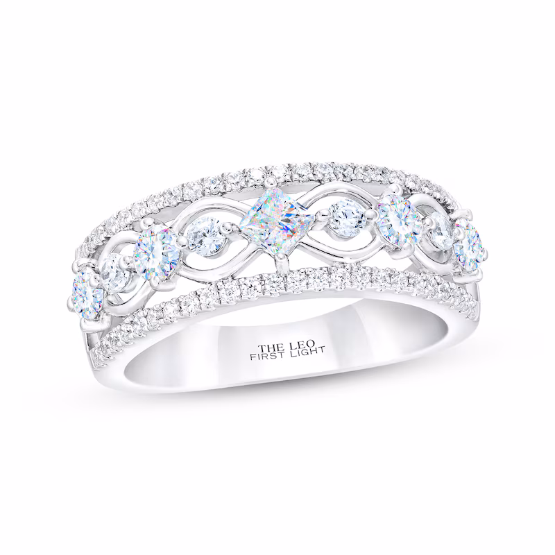 THE LEO First Light Diamond Princess & Round-Cut Anniversary Ring 1 ct tw 14K White Gold