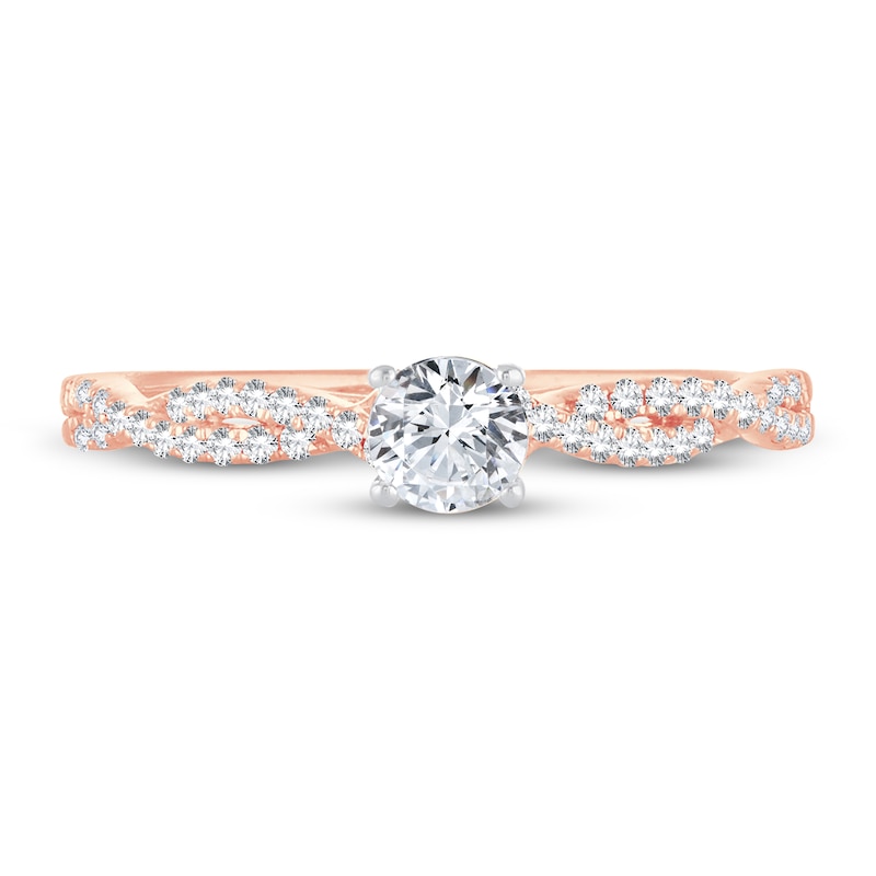 Undeniably beautiful, this gorgeous engagement ring for her features a brilliant 1/3-carat round diamond at the center. Set in romantic 14K rose gold, sparkling round-cut diamonds weave down each side of the band for a total diamond weight of 1/2 carat. From the Now & Forever® bridal collection.