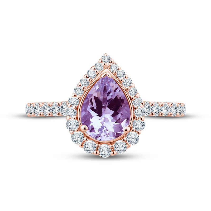 - Amethyst & Diamond Engagement Ring 1/2 ct tw Pear & Round-cut Rose Gold Plated