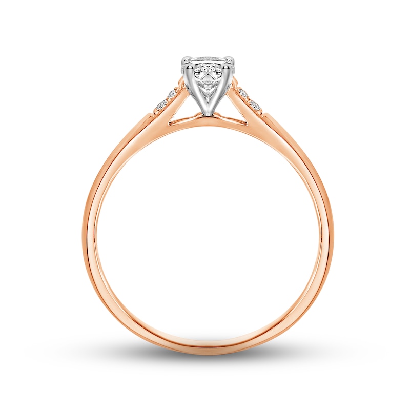This exquisite engagement ring displays a glittering round-cut diamond set in 14K white gold at the center. Two dainty round diamonds sparkle on each flank, giving the romantic 14K rose gold band a total diamond weight of 1/3 carat. From the Now & Forever® bridal collection.