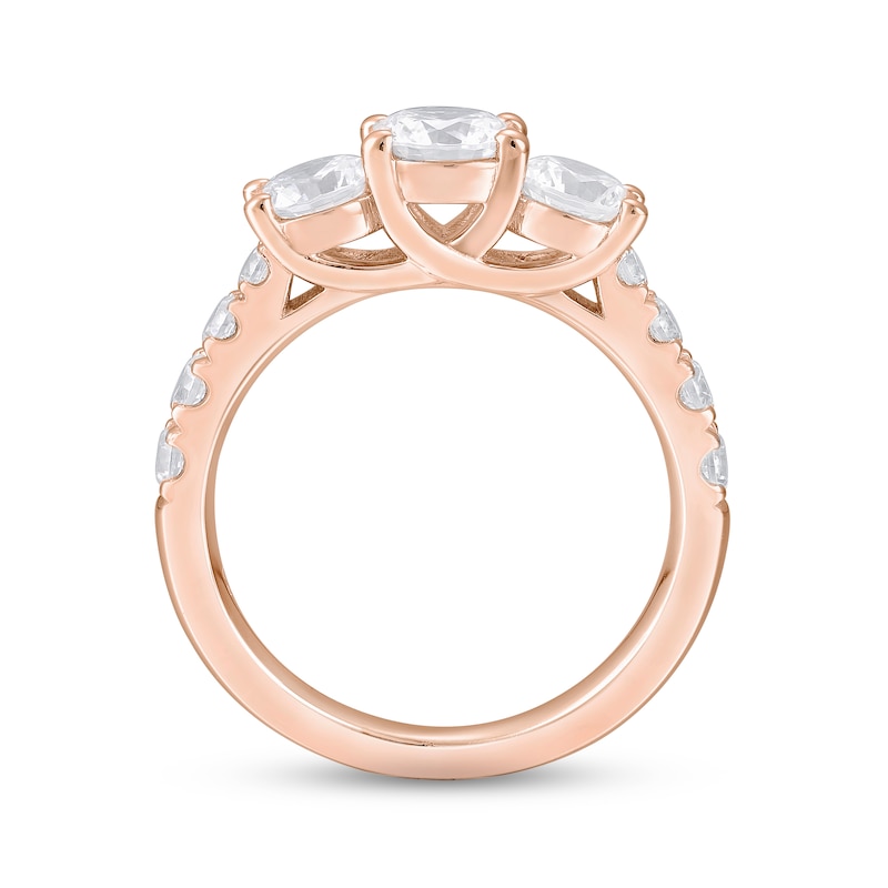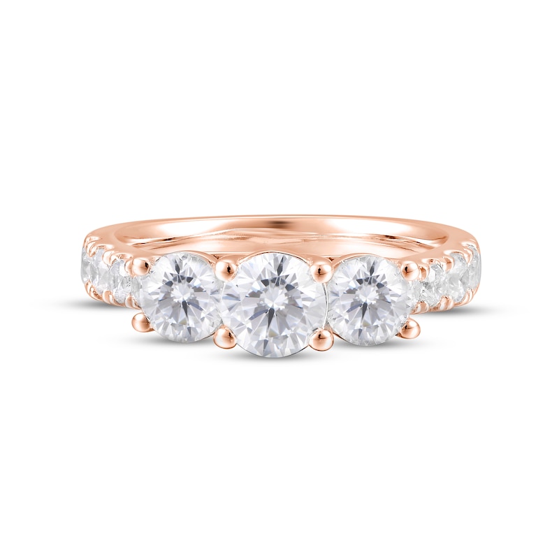 - Diamond Three-Stone Engagement Ring 2 ct tw Round-cut Rose Gold Plated