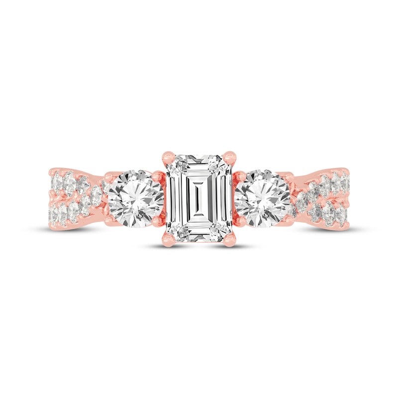 - Emerald & Round-Cut Three-Stone Diamond Engagement Ring 2 ct tw Rose Gold Plated