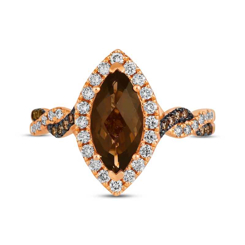 Craft a refined look with this fascinating Le Vian® ring from the KAY exclusive Chocolate Twist™ collection. Set in 14K Strawberry Gold®, the bold design showcases a rich marquise-cut Chocolate Quartz® wrapped in a frame of round Nude Diamonds™. Ribbons of round Nude Diamonds™ and Chocolate Diamonds® twist to create the shank. This ring has a total diamond weight of 1/2 carat. Le Vian®. Discover the Legend. This ring is available in limited sizes. If you don't see your size here, please visit a store to order your ring.