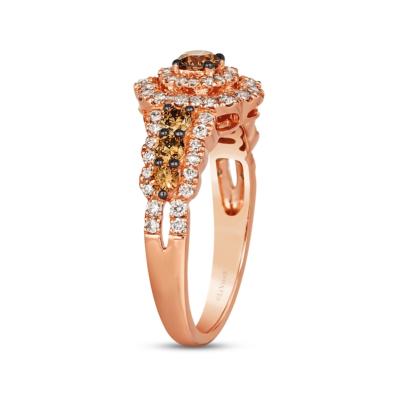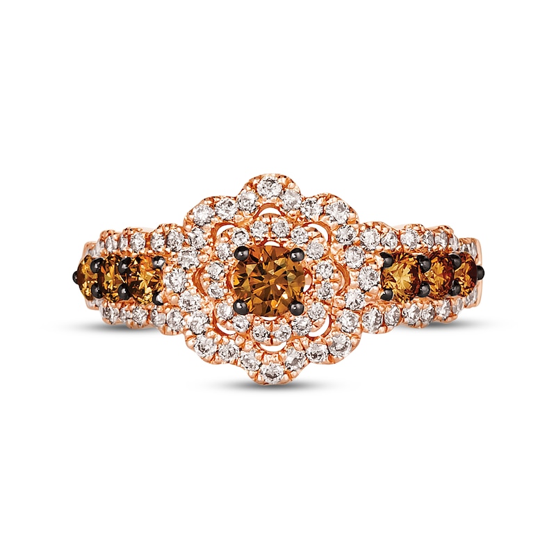 This luxe Le Vian® ring glimmers with irresistible Chocolate Diamonds® and shimmering Nude Diamonds™ that form a breathtaking flower-shaped center and sparkle down the band. The ring is fashioned in luscious 14K Strawberry Gold® and has a total diamond weight of 1 carat. Le Vian®. Discover the Legend. This ring is available in limited sizes. If you don't see your size here, please visit a store to order your ring.