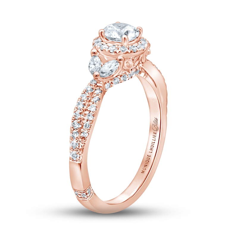- Monique Lhuillier Bliss Diamond Engagement Ring 7/8 ct tw Round & Marquise-cut Rose Gold Plated