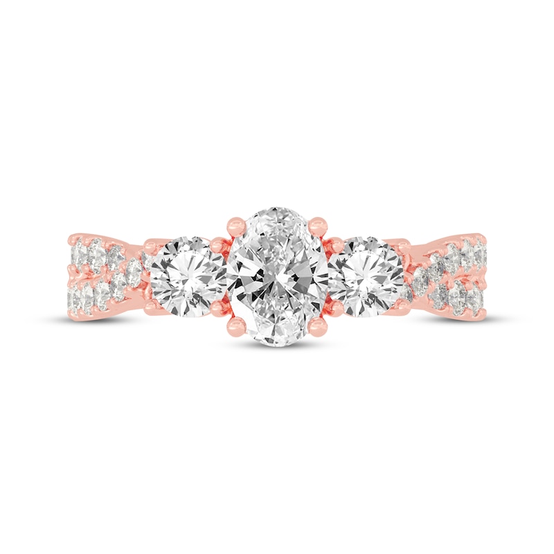 - Oval & Round-Cut Three-Stone Diamond Engagement Ring 2 ct tw Rose Gold Plated