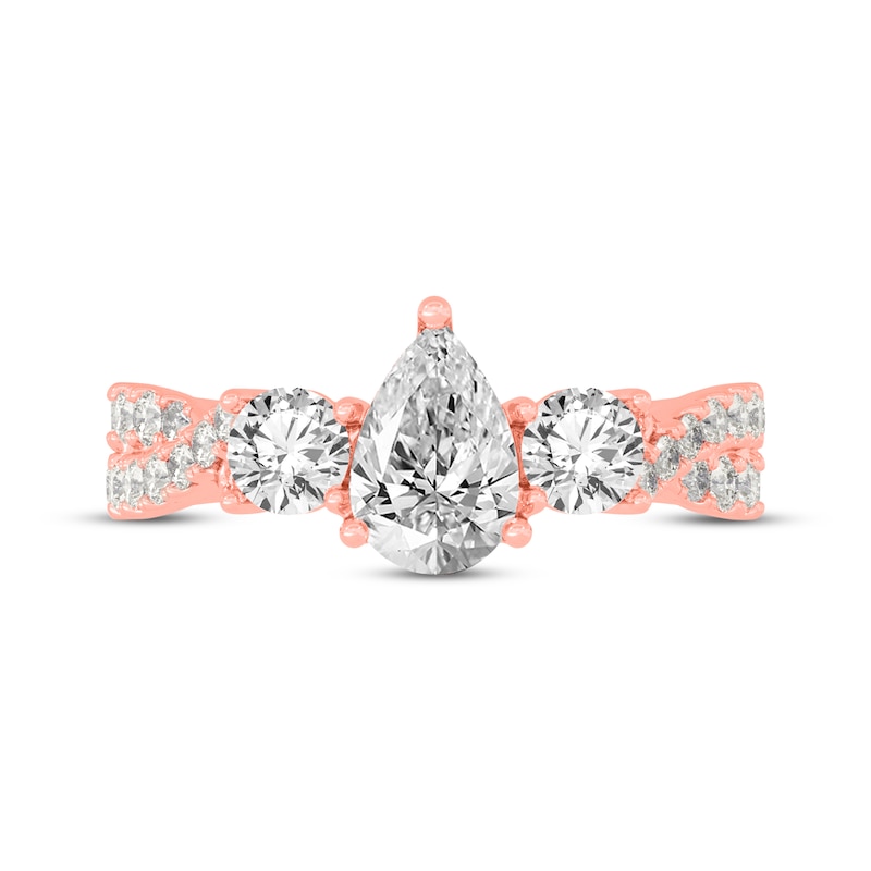 - Pear-Shaped & Round-Cut Three-Stone Diamond Engagement Ring 2 ct tw Rose Gold Plated